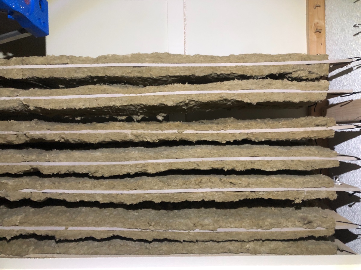 Thankfully i tested it before wrapping in fabric, however i had to disassemble it, rip and frame my 4' x 6' cloud down to two separate 2' x 6' clouds. they are about 7" thick with Rockwool Safe n Sound, and a 1 and 3/8" thick hard backing made of 5/8" MDF and 3/4" plywood glued together, with 6 inches thick of Insulation. They still seem a bit too large for my ceiling height but for now but it seems to help on the early Impulse chart.