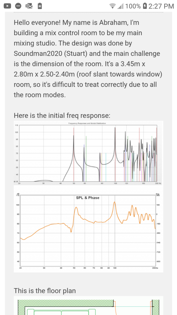 It's a very useful tool... and quite accurate too, as you can see from the comparison of the actual measured response, which I posted directly below the predicted response. For an empty room with fairly massive, solid, rigid walls, the prediction is usually pretty good. However, if your walls are not very massive, not very rigid, not square and plumb, angled, or have holes in them (windows, doors, fireplaces, etc), or large alcoves, projections, etc., then the predictions might not be so accurate.