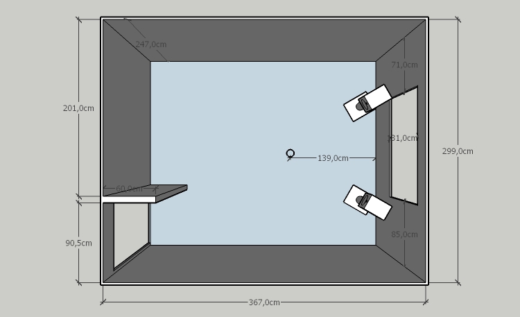 Here is a sketchup plan of the room :