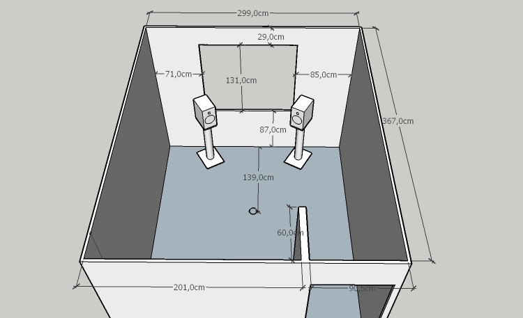 Next, I was thinking of adding 2 corner superchunks to the front corners of the room with some light glasswool (4kPa.s/m²), and covering it with a thin plastic film to avoid making the room too dead (which will probably happen in the process I imagine?)