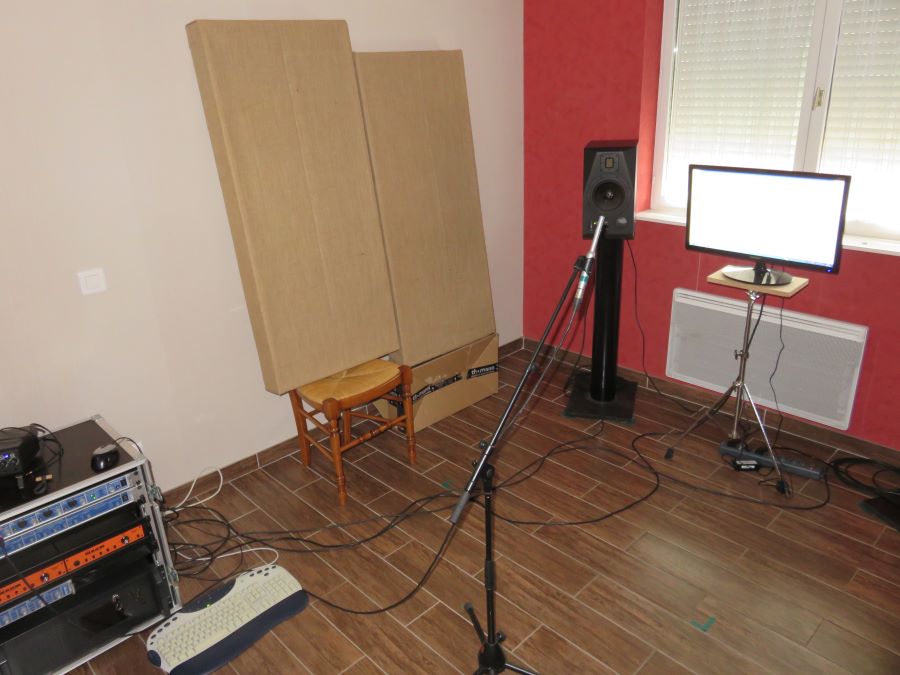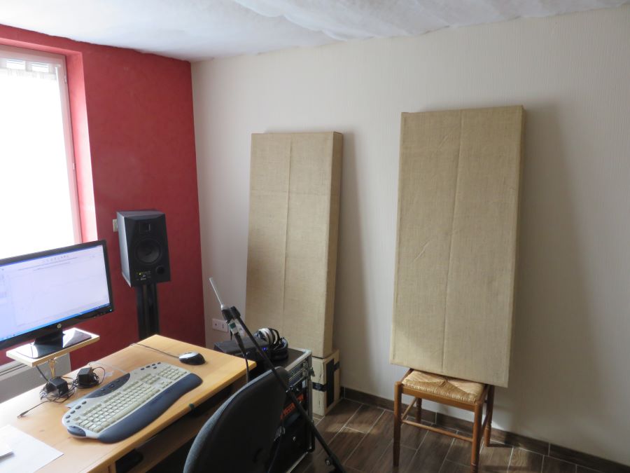 and finally, plus 4 acoustic panels, on the side walls, I made a long time ago. This panels are not intended to stay in the finished version of the room, because I think they are too thin (only 8cm deep), but I found this measurement to be interesting nonetheless to try to anticipate future treatments :