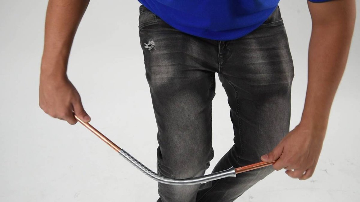 I use a blowtorch on a very low setting to heat the conduit just enough so it can be bent, then bend it around the bucket with the spring inside, and you get a very nice smooth curve. But do be careful! Playing with fire is dangerous. And if you get the conduit a bit too hot with the blowtorch, it will discolor, char, and even burn. Practice on scrap pieces first... You can also use a heat gun, or even a hair dryer, to heat it up. It is safer to use a heat gun, but it takes longer to heat. - On the other hand, if you are using metal conduit, then you need a different type of bending spring that is flared at one end or both ends, like this, ... and goes OUTSIDE the pipe, then you just bend it around your knee: ... or you need one of these "pipe bender" tools: