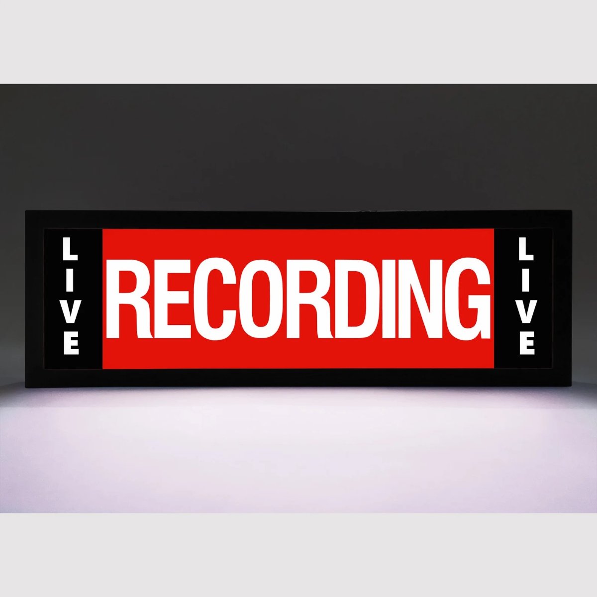 I chose to use Philips Hue lighting which means my red light - somewhat simpler than your nice recording box - is triggered by the little remote which I stood on top of the studio door so I could show you it all in one photo.