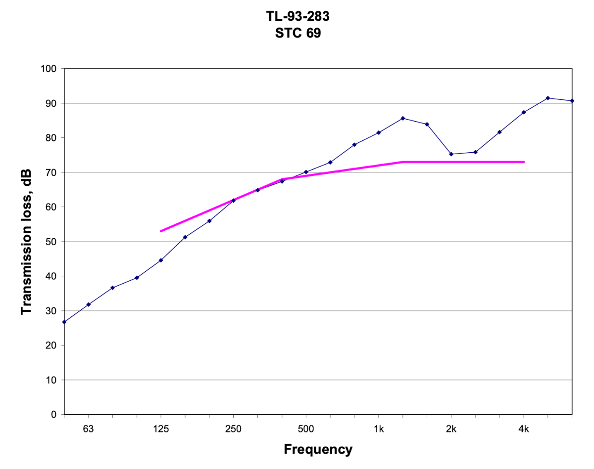 - The frequency curve from the transmission loss graph has to be equal or better in shape than the the frequency curve from the source sound.