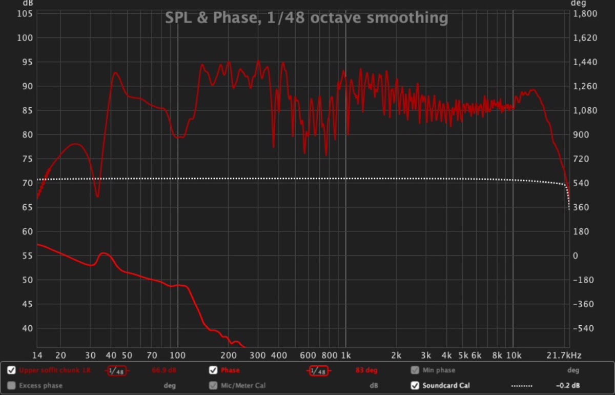 Next move is to built the upper soffit slot resonators, and I haven't yet decide if I should make a copy of the lower ones or if I should try to tune them as low in frequency as I can to hunt the lowest mode. What would you do?