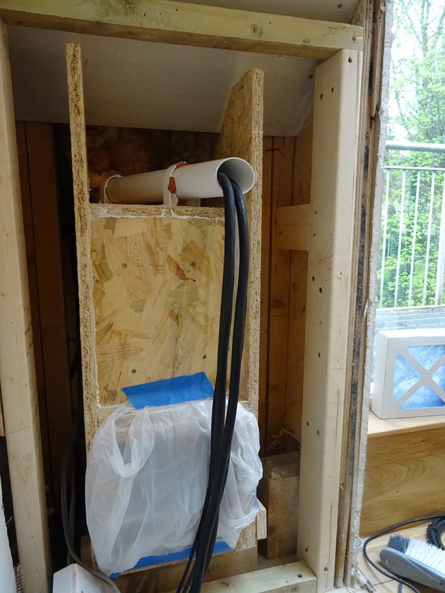 After fixing it all in place and placing one of the side layers on, my wife & I did a test; one of us talking loudly in to the duct end while the other listened at the other end of the room. Even though we were both in the same room the difference is marked. It's pretty hilarious actually, does indeed sound like someone behind a wall.