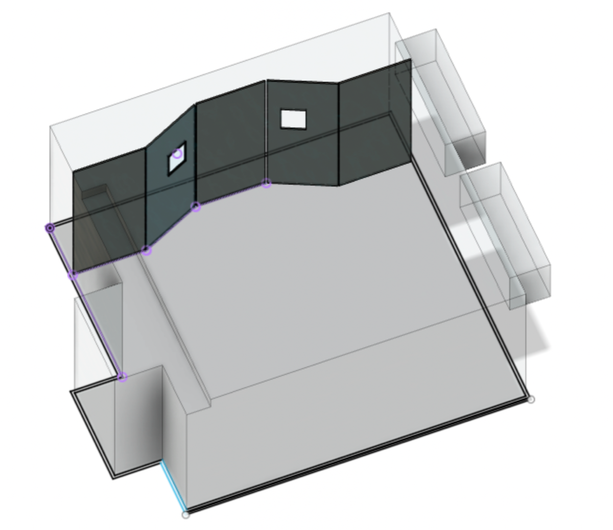 Here's a slightly more refined version of the overall soffit geometry. I think this is getting close - next step will be the internal construction and integration with other treatment elements. The dimensions are in inches here.