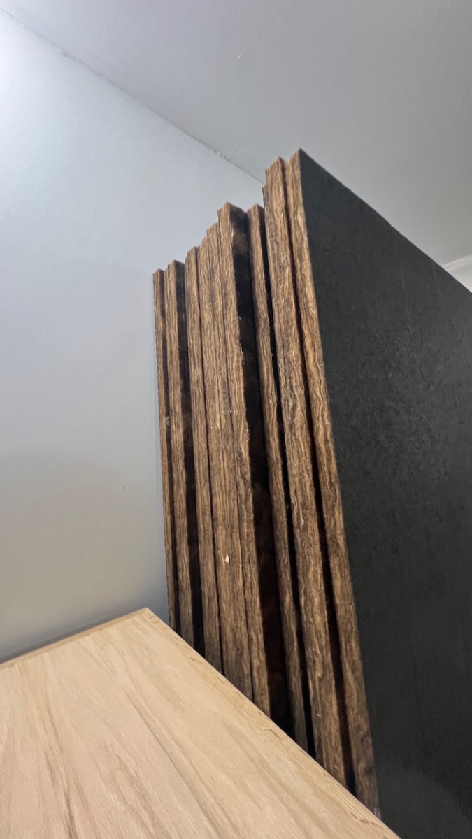 I'm about to resume this home studio project, and still have around 500 sf (46 m2) of 1" thick Manson Acousti-Liner sitting around in 4'x8' sheets.