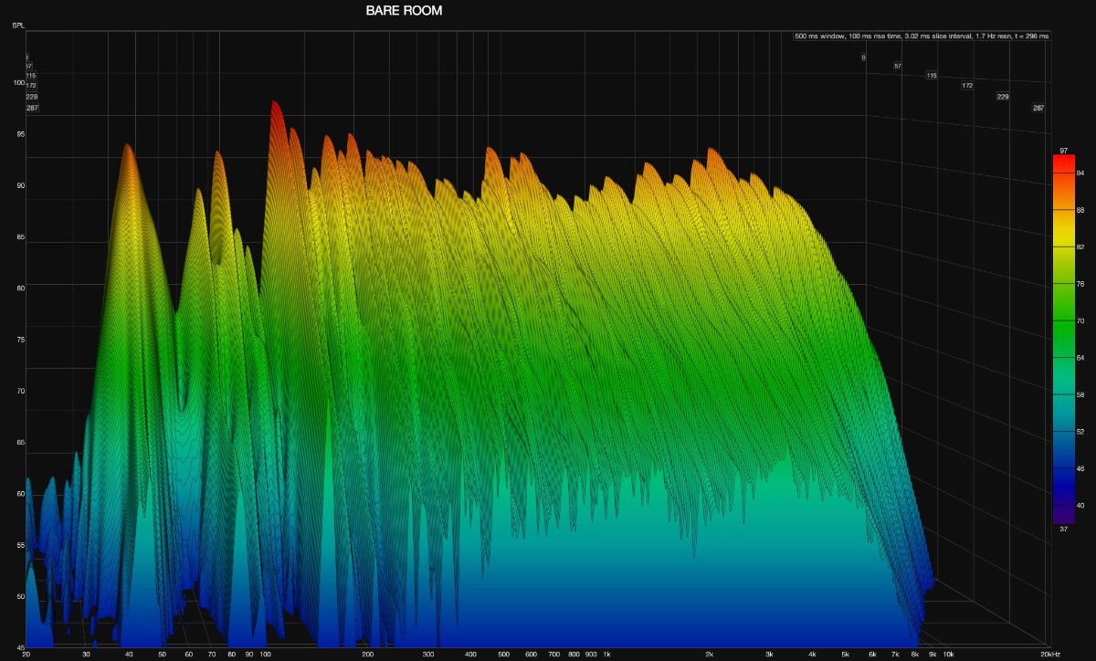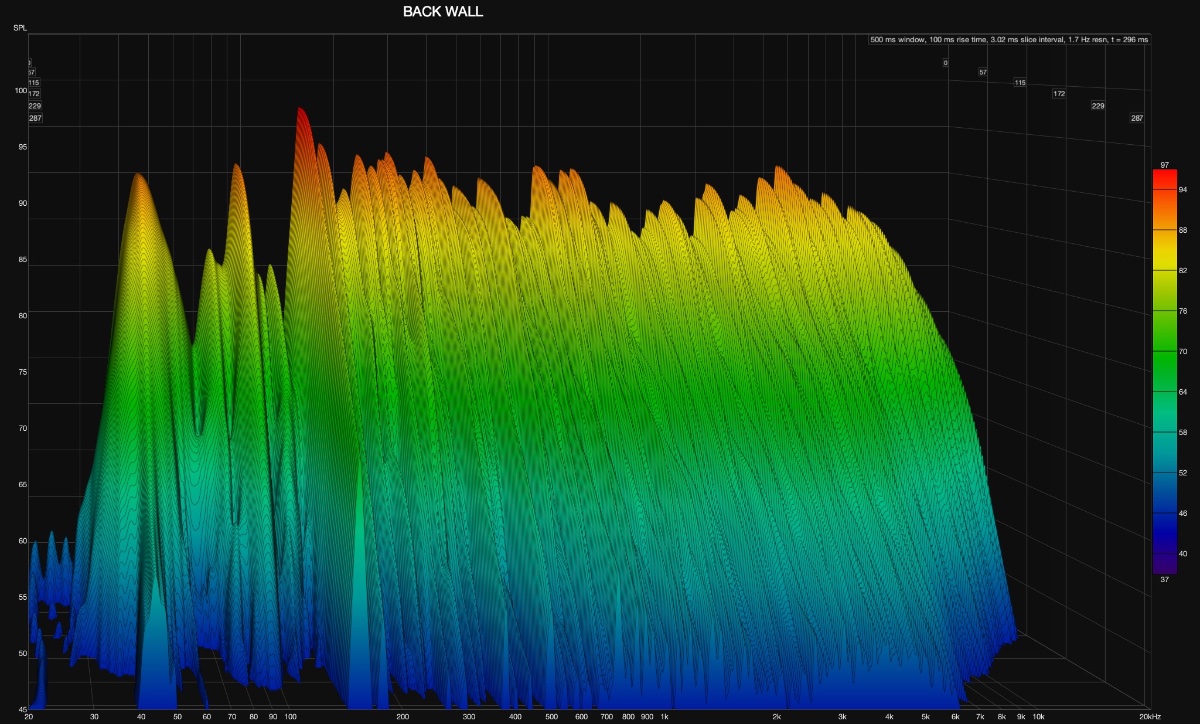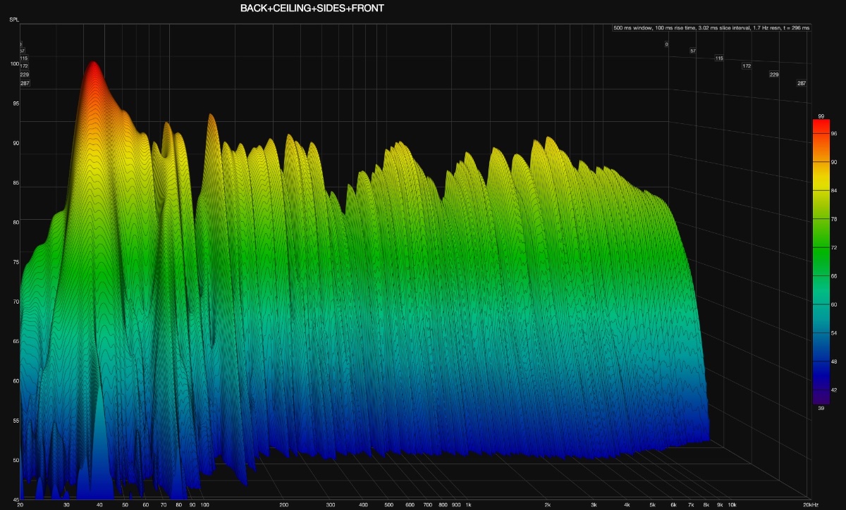 PS the three additional attachments below show waterfalls acquired with the subwoofer, at various stages in the recent treatment. If nothing else, the side and front treatment (using my leftover mineral wool on the sides and front) seemed to have had an effect in the high frequencies.