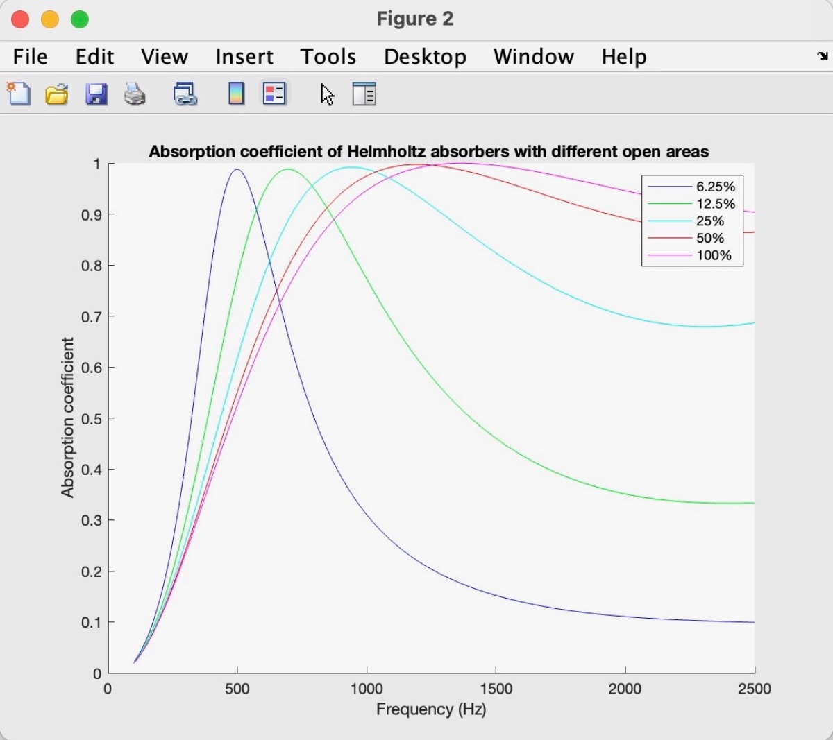 This is Figure 6.11 from Cox & D'Antonio, showing effect of open area percentage in a Helmholtz absorber.