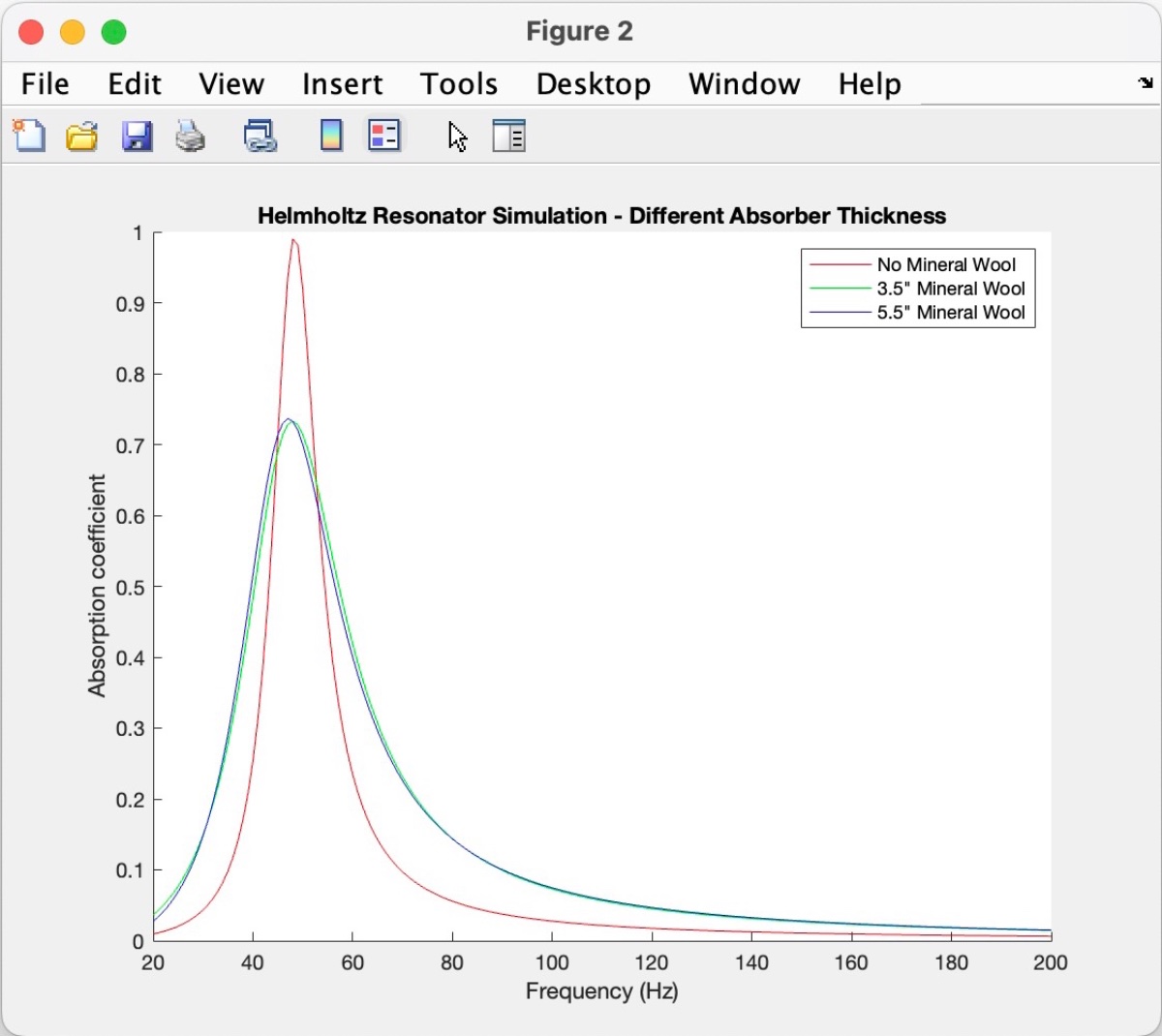 Of course doubling the mineral wool resistivity is going to show an exaggerated effect, but it does demonstrate that the resonant frequency can shift with this parameter (in addition to the expected change in bandwidth/Q).