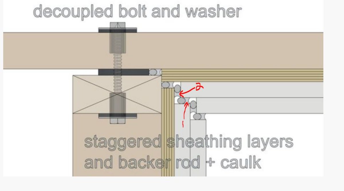 1. a) In my design above, I seal the corners after installing all the sheets – ceiling and walls (arrow 1). However, in your diagram below, I understand that the ceiling sheets are sealed before the wall sheets are installed (arrow 2), so double sealing. Would it be beneficial for me to do this?