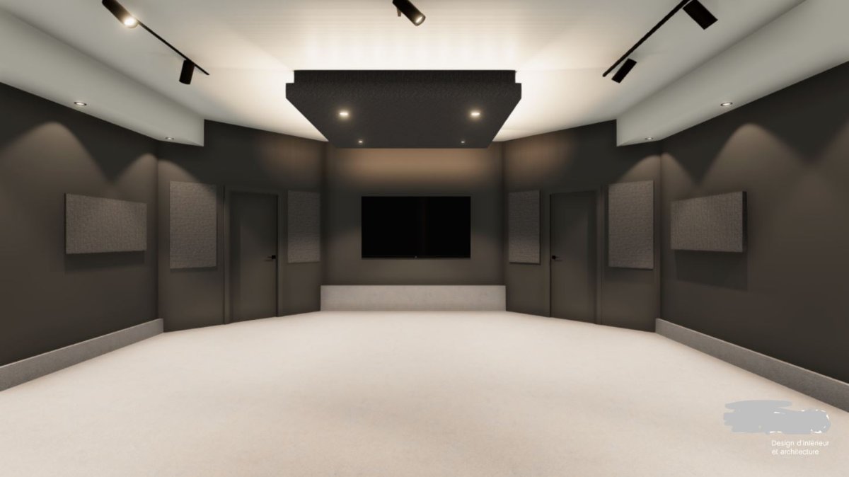 My wife and I decided to renovate our bathroom. We hired a company to handle the design and construction work, and the designer they assigned to us is excellent. So, I decided to hire him to help me with the interior design of my studio, including the lighting. Instead of extending the ceiling panels to the walls of the storage area and the front wall (as in my original plan), he suggests extending them to the back wall and also installing recessed lighting there.