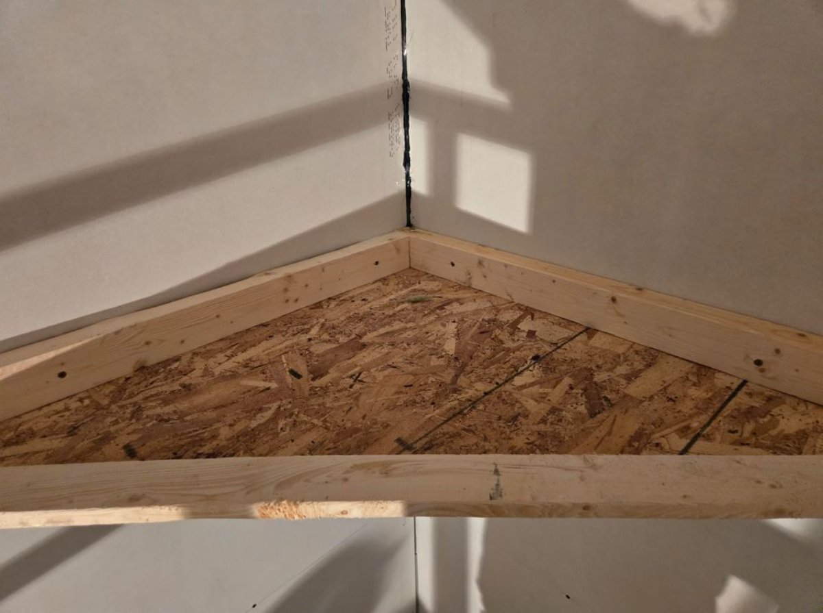Rereading my previous post, there is a mistake: for the first layer of the ceiling, I will use 1 5/8 inch screws (the same as for the walls) so that the screws do not protrude beyond the slats.
