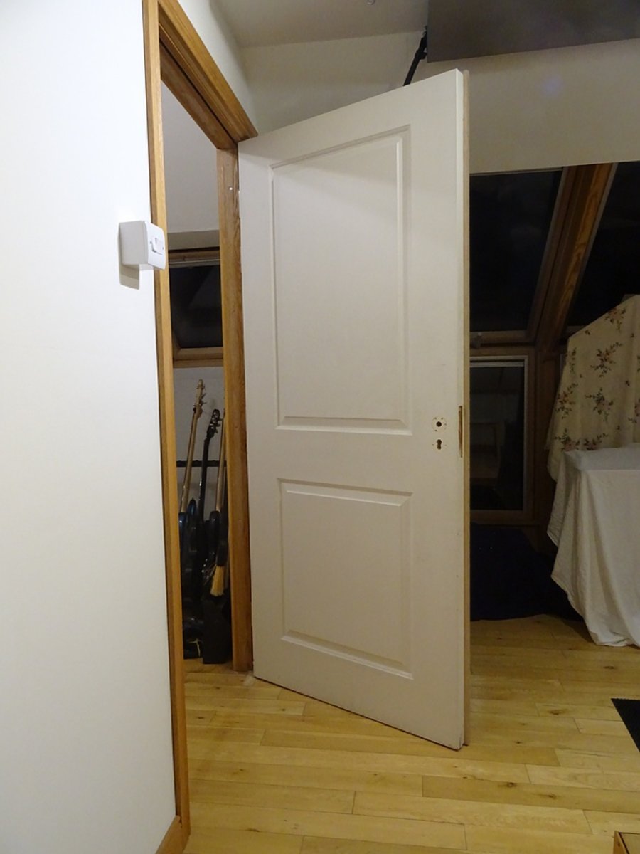 Here's a couple of photos of the normal side of the door. It goes onto our landing, and having that side of the door kept as the normal panel style makes it in keeping with the rest of the house. It just looks like an ordinary door.