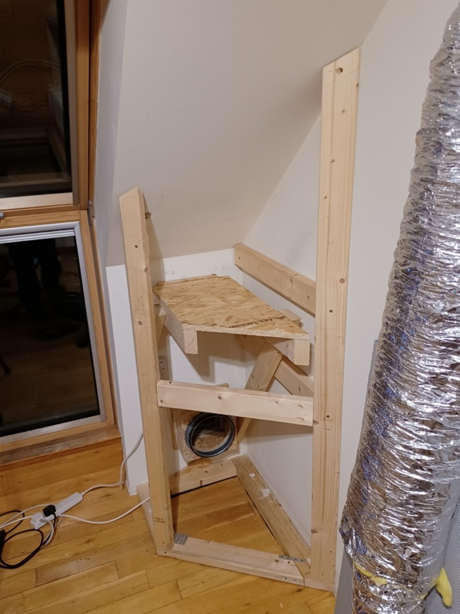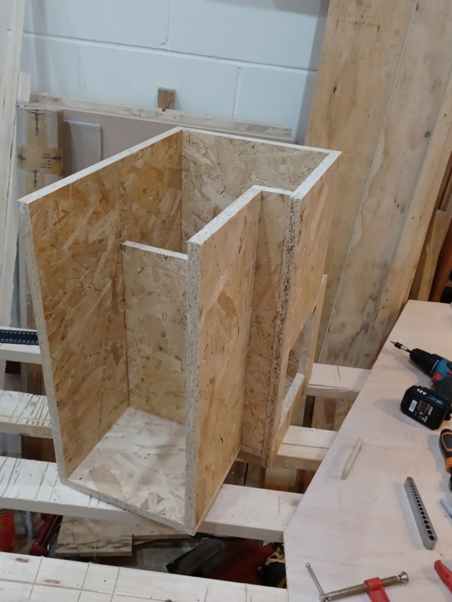 I've built the shell of the ventilation supply plenum from 18mm OSB and done a test fit.
