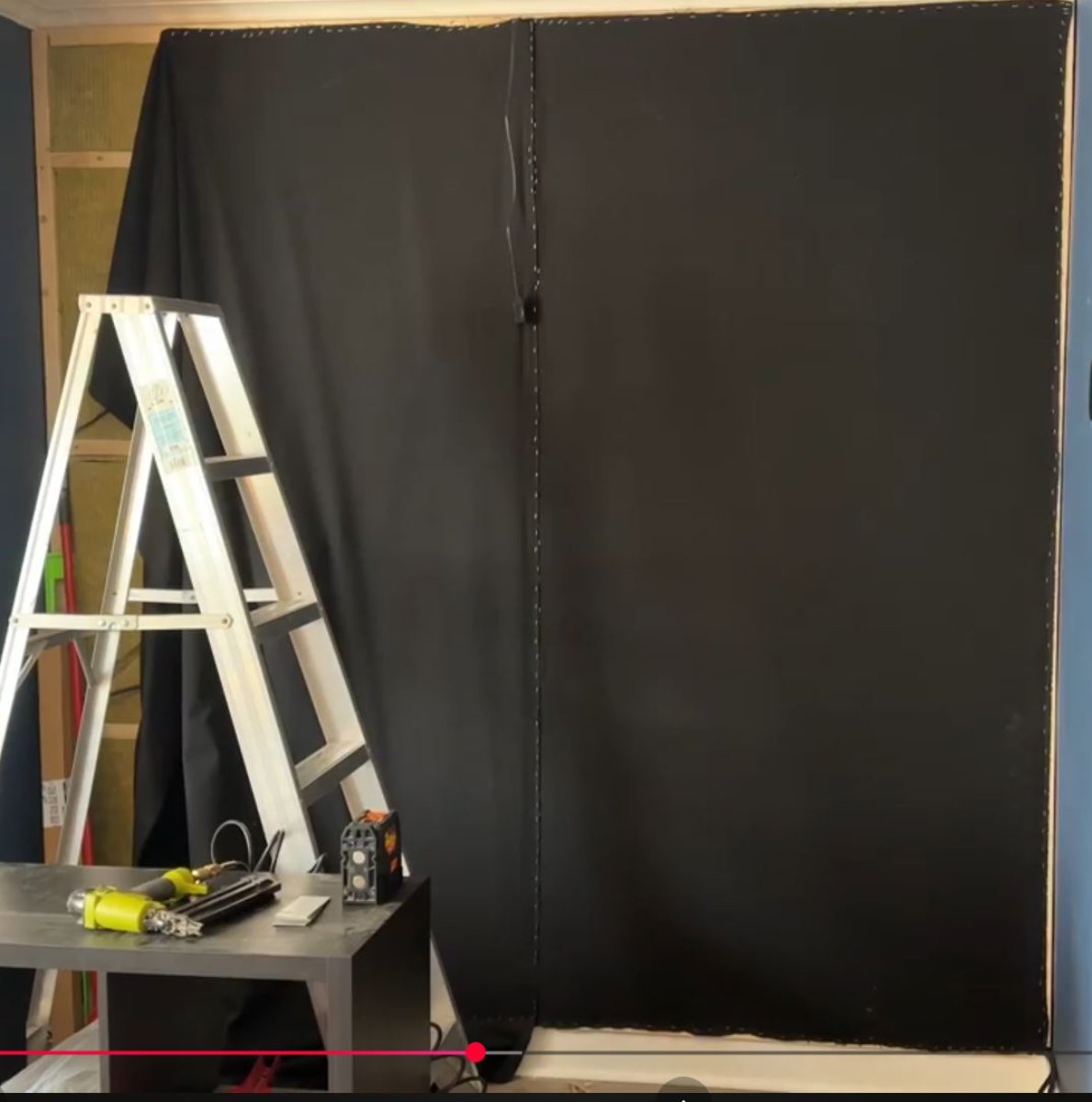 While researching how to do this, I found an interesting method for creating one that incorporates sound-absorbing material, and I thought it might be a good idea, despite the fact that I haven't done any acoustic testing yet, considering my studio monitors will be nearby. I also plan to mount the front speakers of my 5.1 system on this wall.