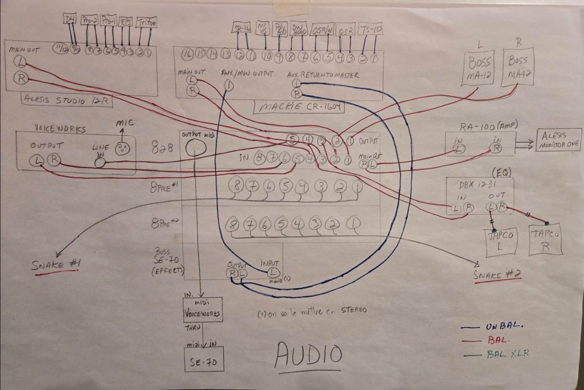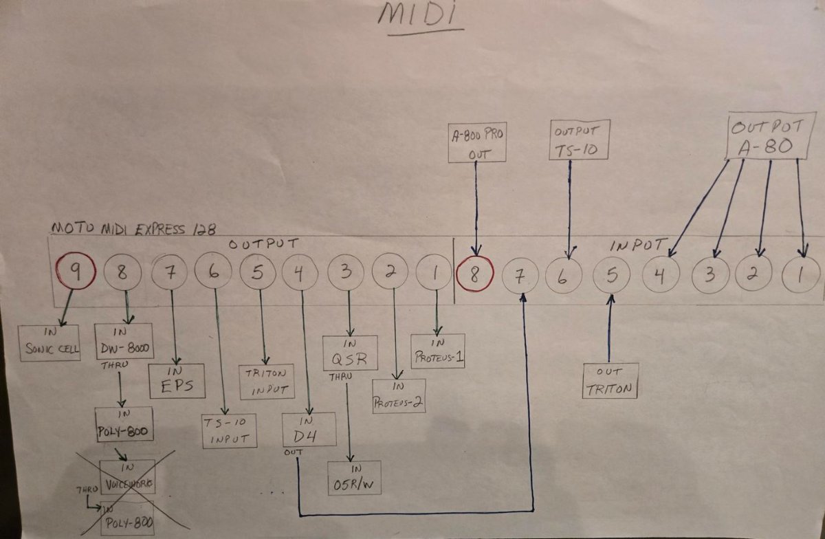 Here are the diagrams I made at that time for my audio and MIDI connections: