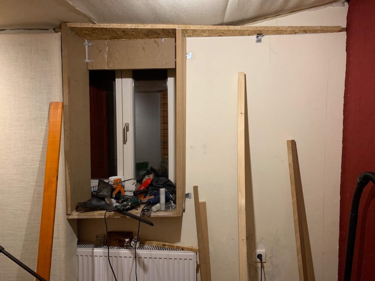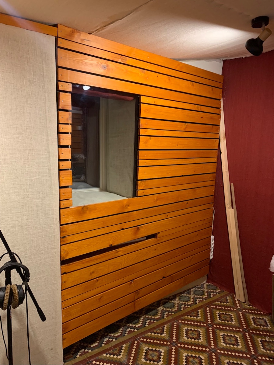 But on the right side there is a window I wanted to somehow keep, so I built an extension in order to put a 1 cm laminated glass on the inside and make an isolated and angled window merged into the slot resonator. Not an easy job for an amateur like me… but with all the mistakes I always make I finally didi it.