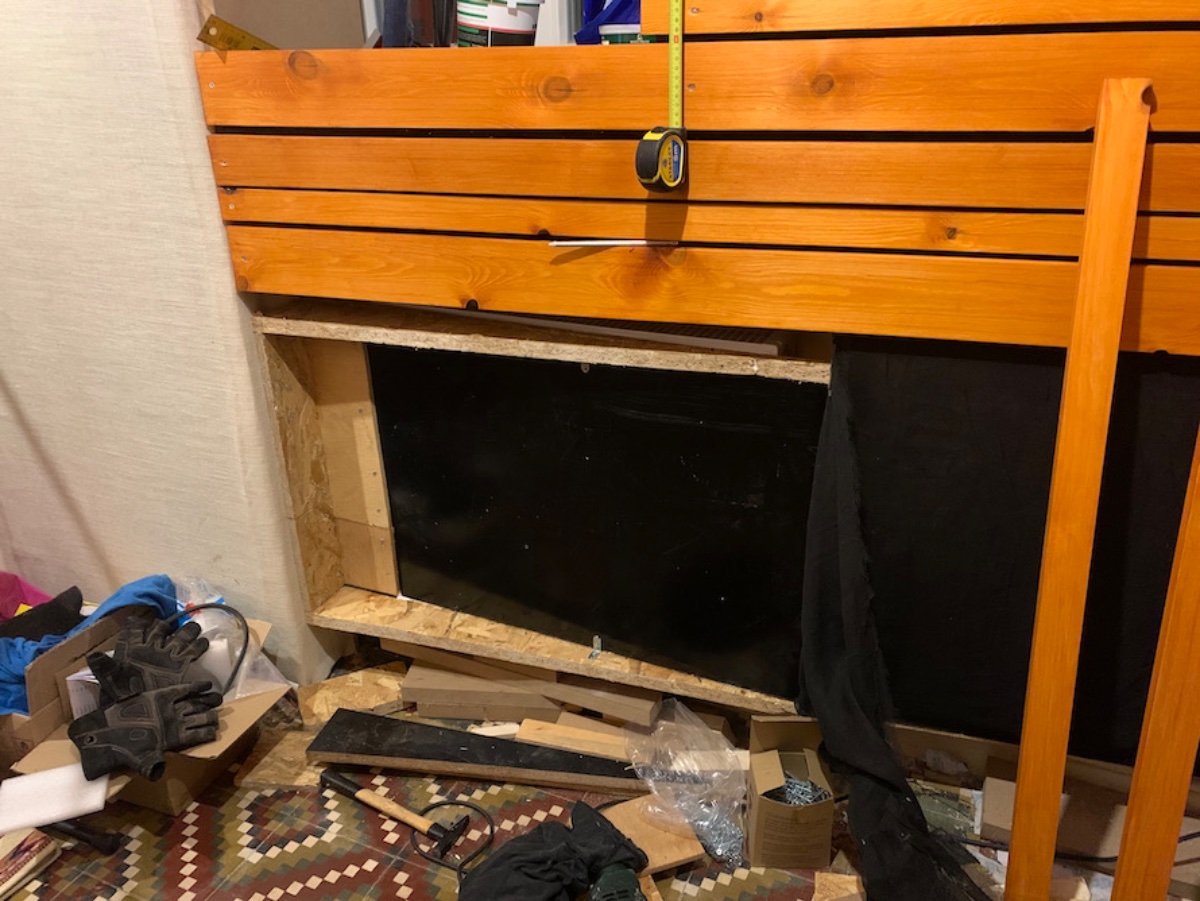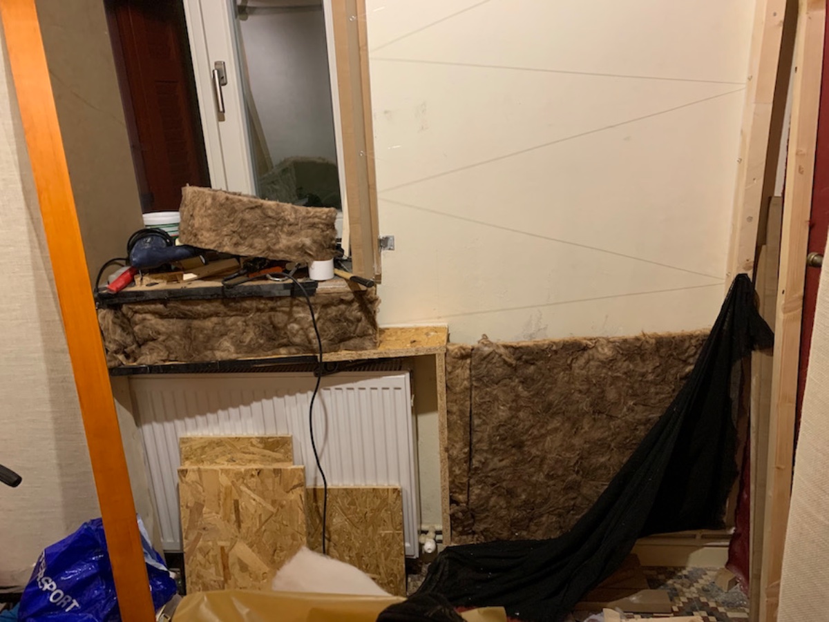 One more problem was the heater radiator which I wanted to keep, but its metallic construction sings along even with spoken voice…. not much but noticeable. So I made a smaller wedge resonator, packed it on the radiator with foam between and that was the end of its days as a singer..
