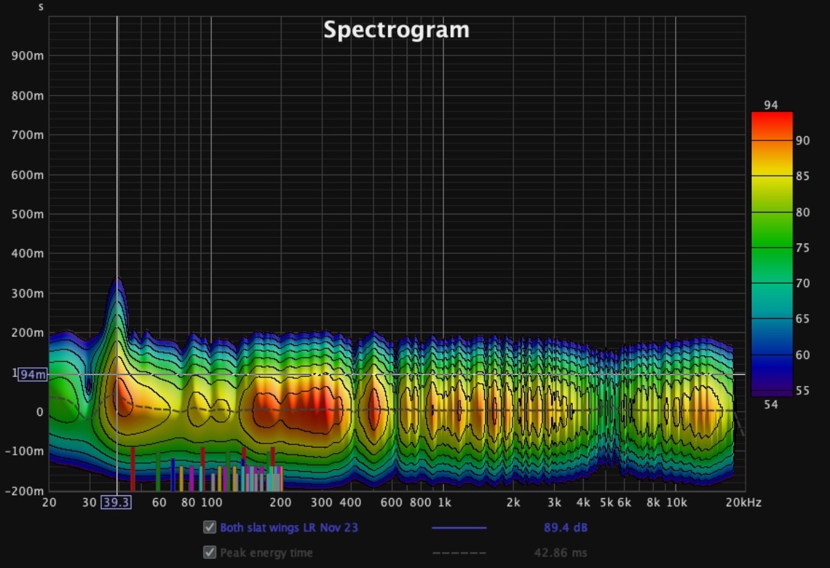 After making the diaphragmatic absorber (with its not so good performance…) between the speakers, it was the time to finish the plan I had (see post #15) with the angled side slot resonators (wings). The idea was to try to make this tiny room not feeling dead and unpleasant, without further compromising its already difficult acoustics.