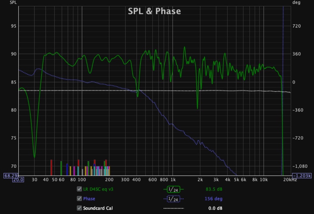 Thank you for the analysis Stuart, the anomalies on the speakers response is something I do have noticed but wait for the room to be in a good acoustic shape to address them. These speakers are custom made and an old design (and probably a weak link)I already had before I start this studio construction journey. Currently they are tri-amped with a dsp processor driving the amps, but being fitted in such a small and untreated room it was futile to try to “tune” them.That high mid dip could be a cross point. Now that I am almost there it is their time… this also includes eqing out that 42 hz resonance Glenn so patiently is pointing every time..