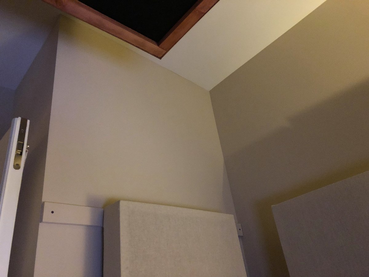 1. the 2 side walls, up by the ceiling is one of the areas I'd like to place an absorber in that 'corner' ... and the other is just above the 2 French Doors. I have a few left over panels from the original build, and I think they would serve purpose.