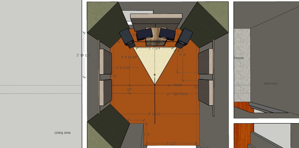 Once my brain started to settle, I was able to make this Temp design into a more solid layout. There was no attempt to soundproof, as the expense would have been massive.