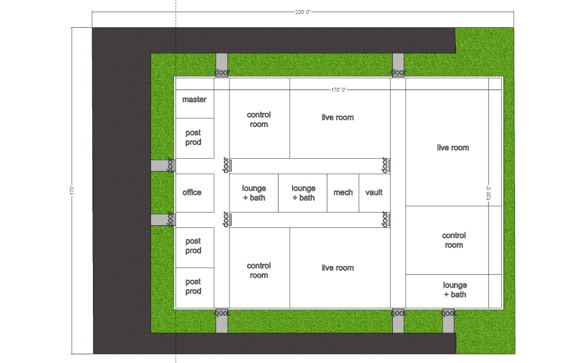 What would you suggest if going with larger single floor plan? Adding on at least three production suites and one mastering suite for immersive? Central mechanical room would be sound isolated (at least live rooms would be)....so not sure why need to relocate?