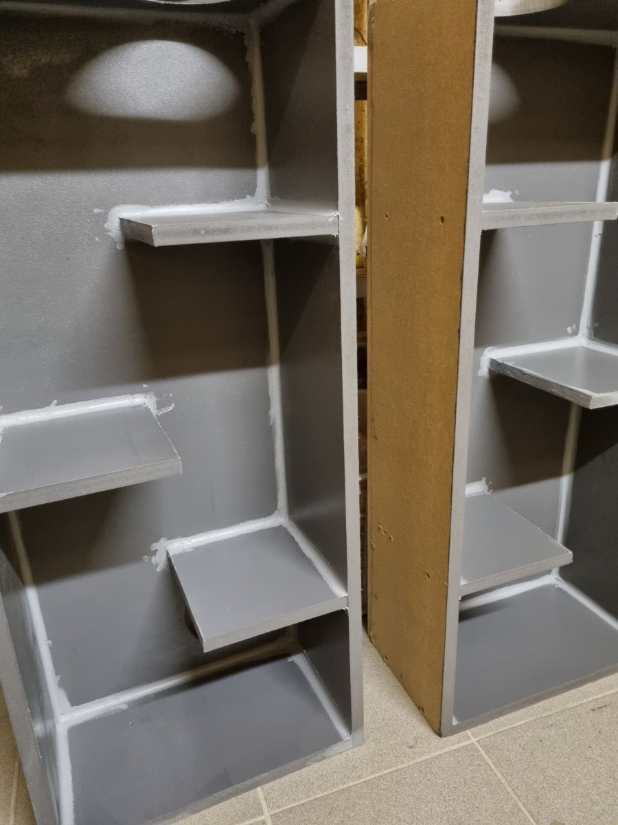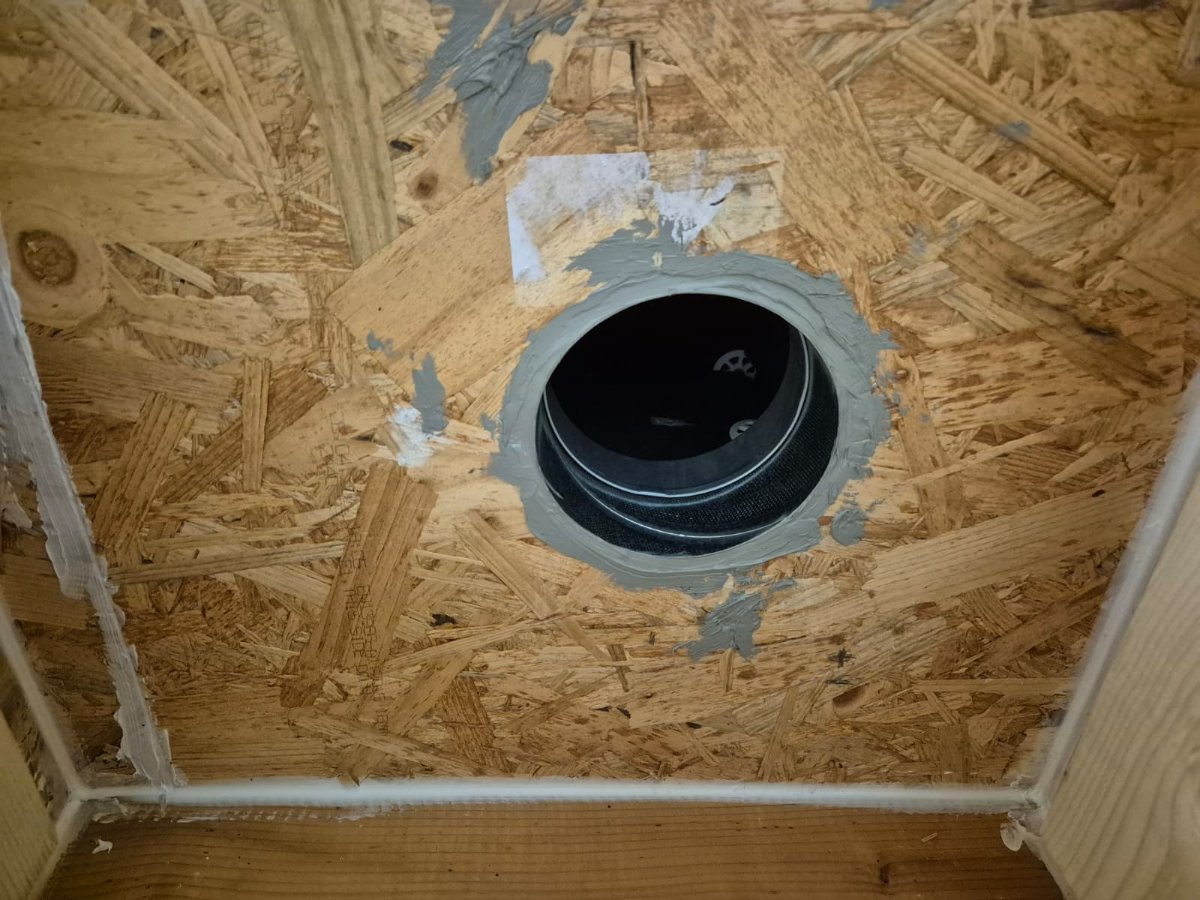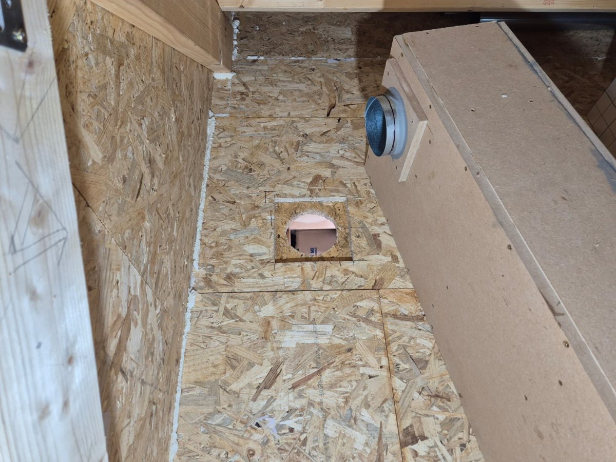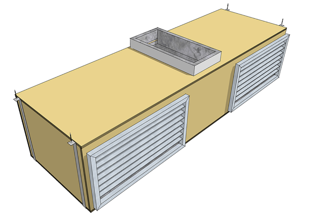 Made them from MDF and designed them to be around twice the size of the round 125mm duct. It sticks out 6 cm from the ceiling and I will cover this up with a ceiling cloud.