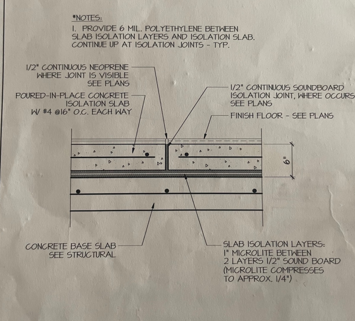 I have cut the slab to install sewer lines, It can be done I guess with out an issue, but it would be only the control room, The bathroom and kitchen would remain as one slab with the LV . No big deal. The slab will need to be cut in the CR to install conduit from the api to the mm 1200, FX rack. So it maybe easier to put another slab over the existing an isolate this way, But this is getting into some serious money this way.