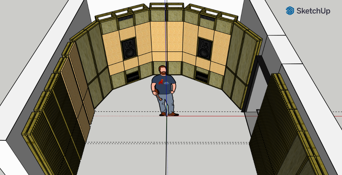 So my thought was to create a set of reinforced frames with a (semi) reflective front. Imagine a box but with only one heavy, hard side and the rest of its is open framing filled with fiber (open, not closed, to prevent box resonance).