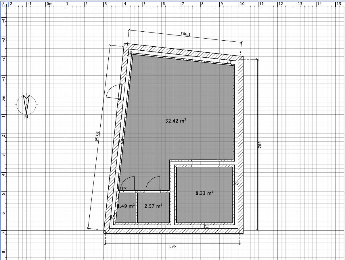 I've made the transition to digital (Sweet Home 3D)! It was a bit finicky at first but it definitely beats pencil and ruler... I've basically put in the walls (which I think is double brick, so 10cm brick (common brick size in the Netherlands), 5-7 (I took 7)cm cavity, and again 10cm brick: 27cm in total exterior wall). I drew them so that the inside dimensions match that of the floorplan included in my home's brochure... (I wish I could go there and measure, but I can't until I get the keys)
