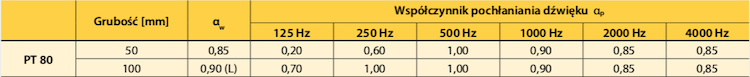 These are the specs provided by manufacturer of PT80 (80kg/m3):