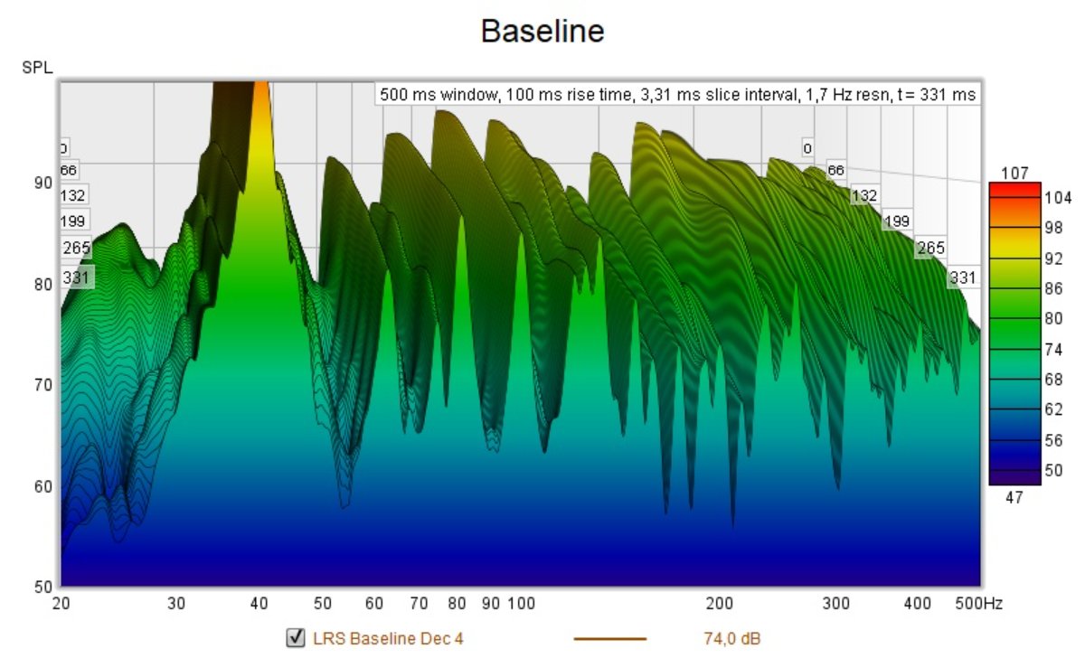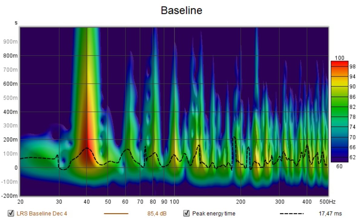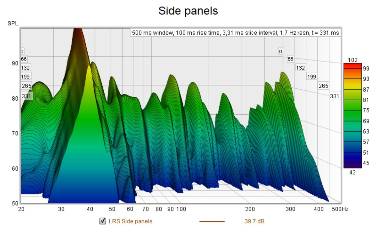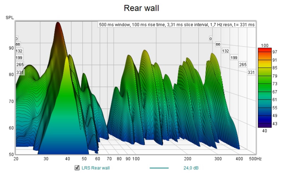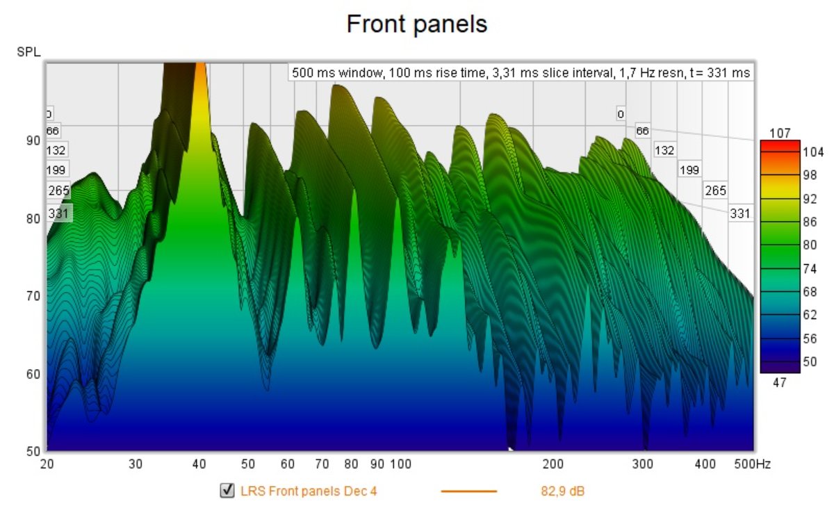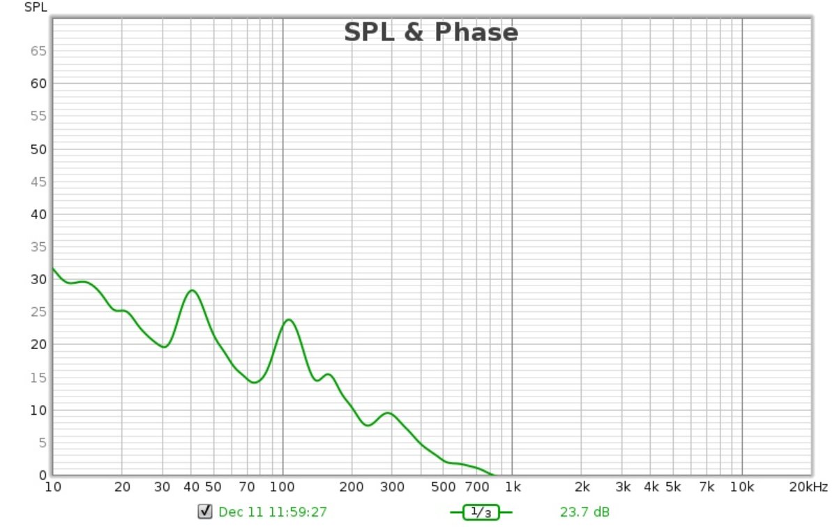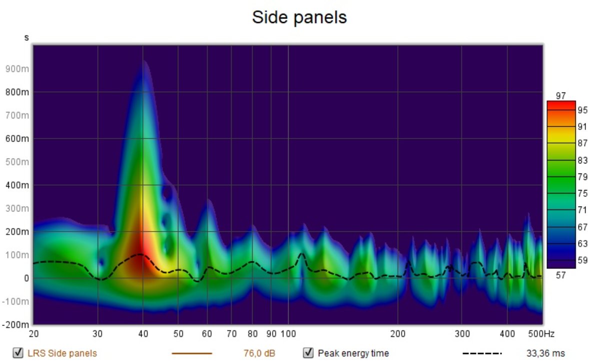 During the weekend I stuffed the window cavity and measured almost 30 dB C isolation improvement there. Then I redid the baseline REW measurement. Next thing I placed placeholder panels behind the speaker and run another test.