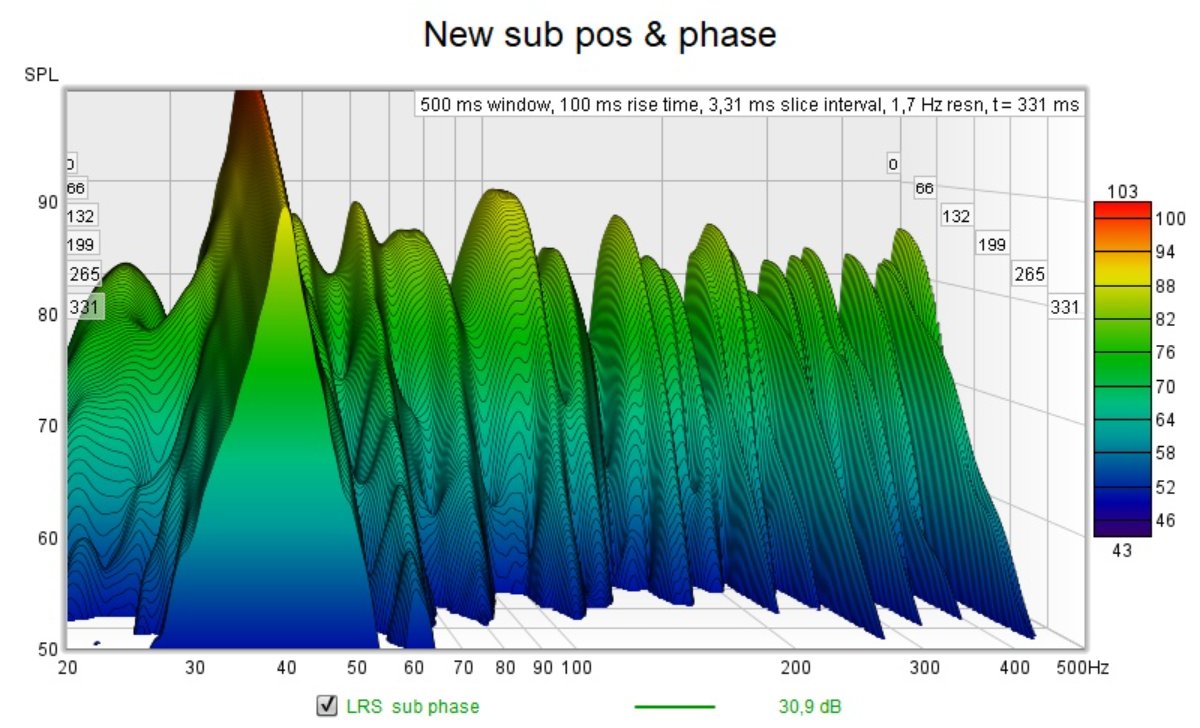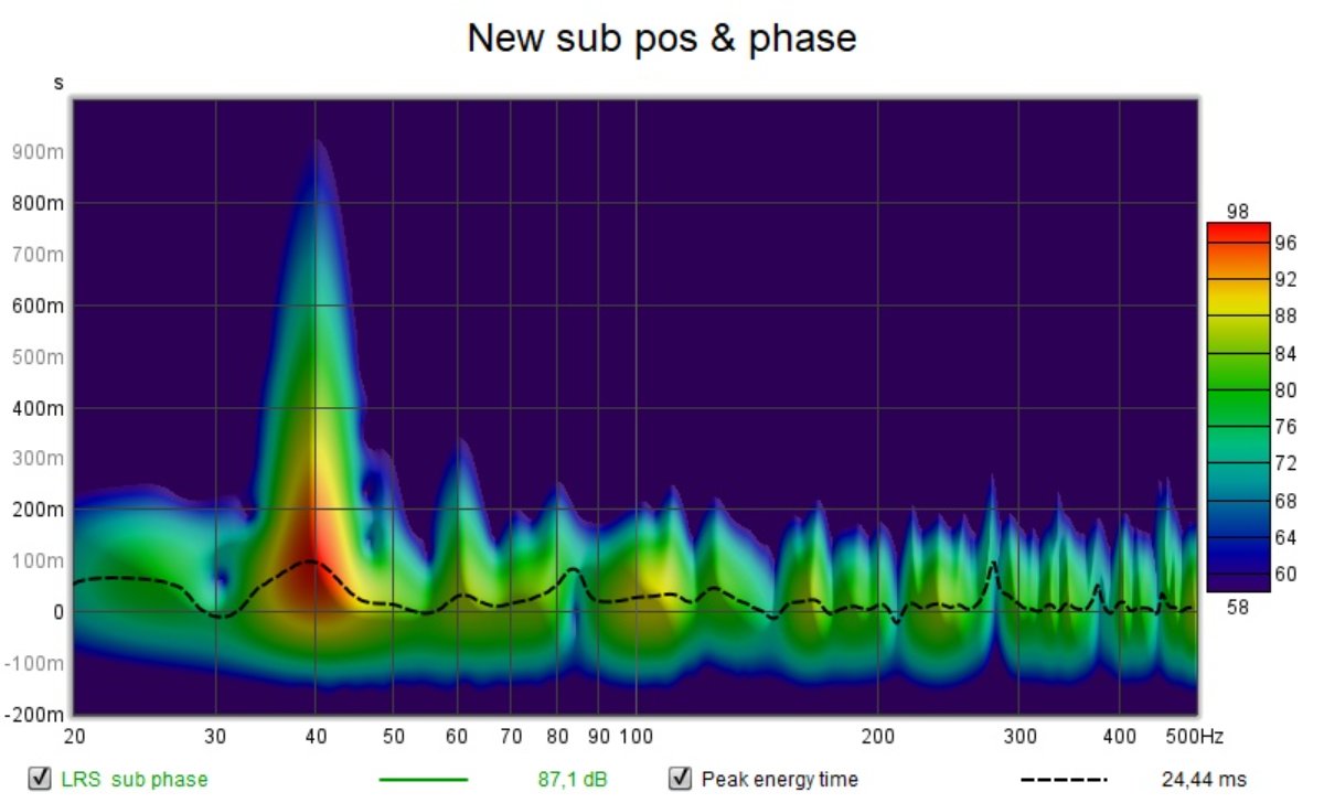 Next I tried to detrmined suitable position for sub, by placing it on mix pos and playing pink noise and then followed sub manual for phase alignment settings and run another test: