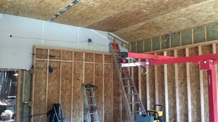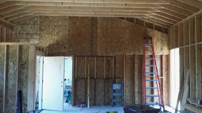The building will be a converted 20' x 24' X 12' 6" free-standing pre-fab two-car garage/workshop with NO GARAGE DOORS (one less thing to worry about), no exterior windows, and built on a reinforced concrete slab. Studs are 2x4, 16 OC.