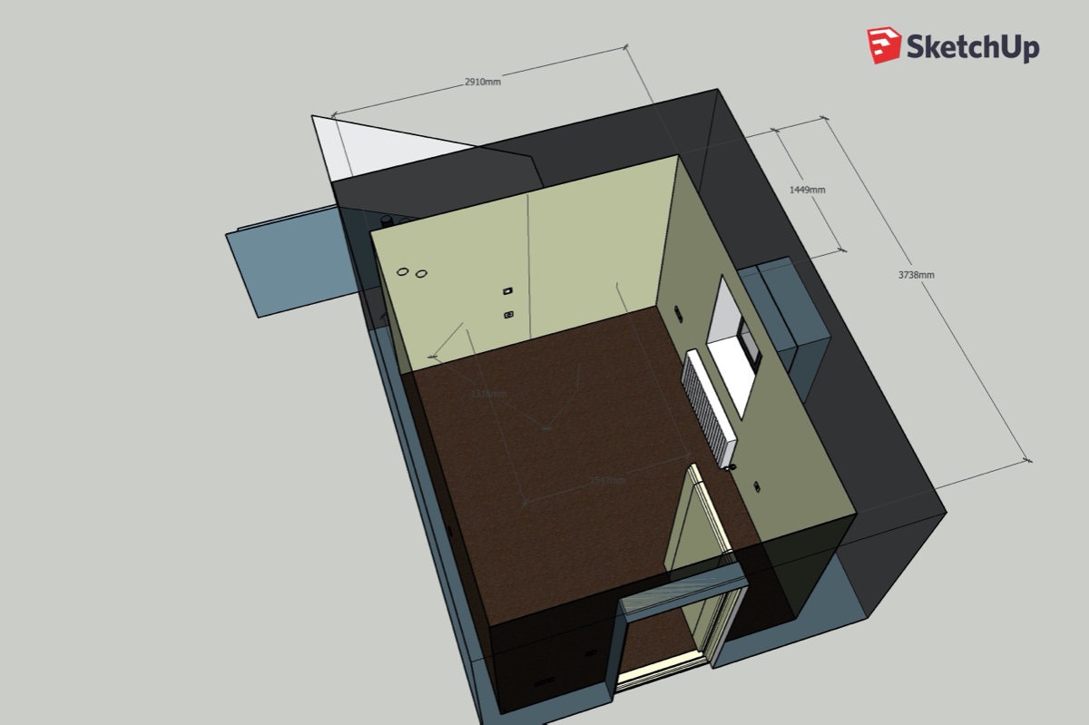 their rooms are almost identical in dimensions to mine, and also John Sayers himself has given some skp files, so I gave it a try: