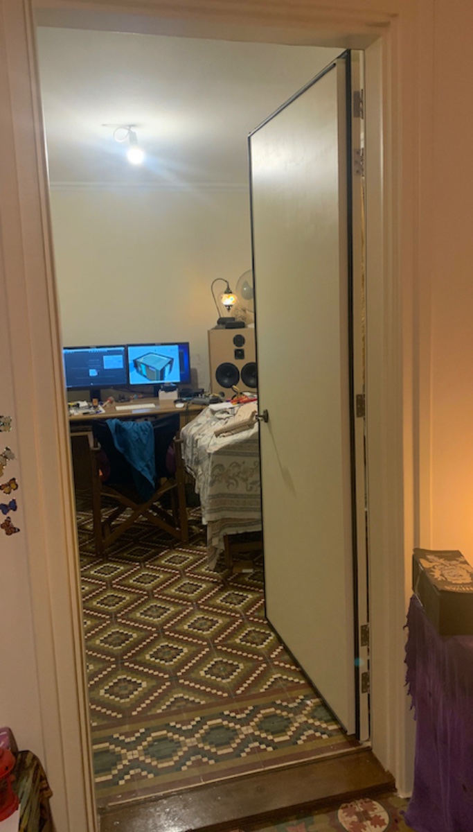Finally after months of reading and learning, is time to start my own project! As the title describes I have the luck to be able to dedicate a room of my house to create a little home studio. Its dimensions are L: 3,74m W: 2,91m H:2,50m and is part of an old 50's house built of 70cm stone outside walls, 25cm solid brick inside walls, concrete tile floor, concrete ceiling and a solid wood 3cm door. The house is ground floor and there is another residence above.