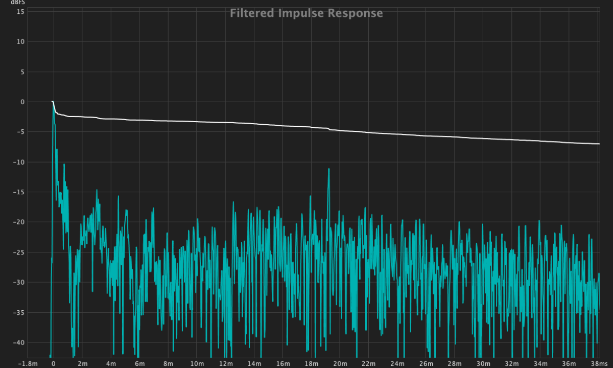 Pink noise playing in the room (blue) and the result just outside the door (purple).