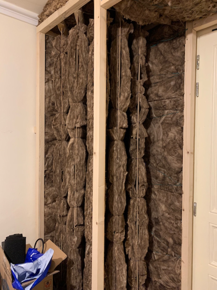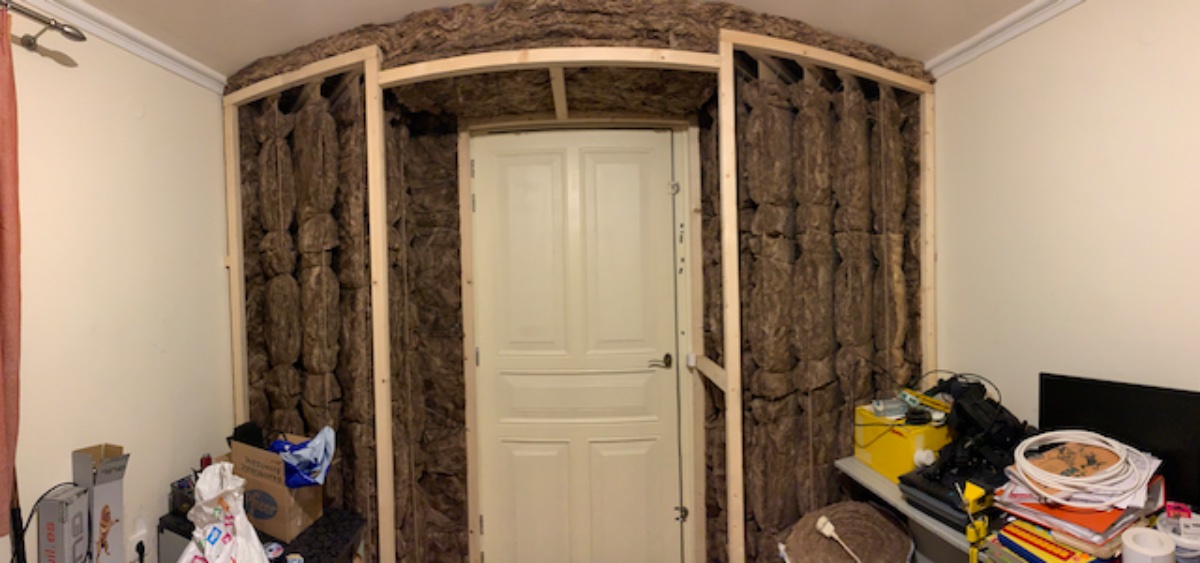 The heavy wall construction has already given good isolation from/to the outside world (nearest neighbour @ 4-5m.. ) with the weak link be the double-glazed window measuring 35-something db Loss just outside of it. I don't usually work with high SPLs, but there are dogs barking in the neighbourhood and airplanes frequently passing so I have to take care of this.