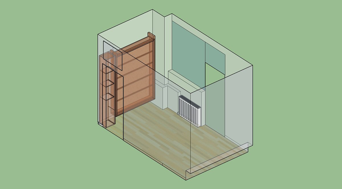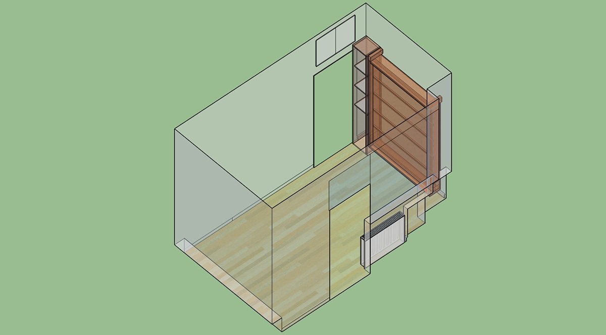 The room is 390 x 221 x 290. Here are some pics from the Sketchup model I made: