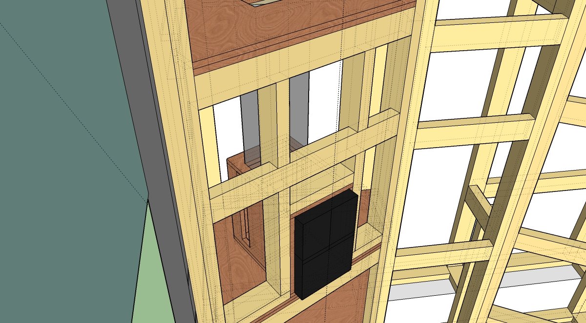 Here's the left soffit (just base & king studs, no inner studs, baffle, panels etc yet):