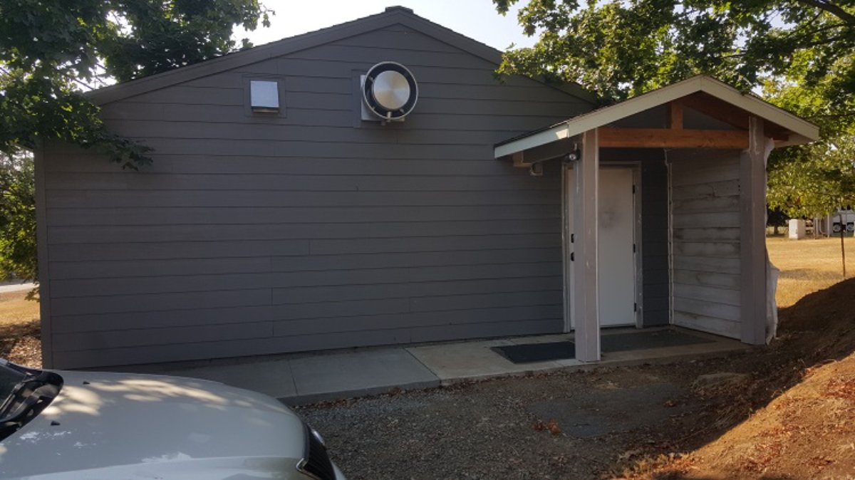 Exterior view. Entryway cover awaiting completion when maintenance gets around to it. Trim painting still pending. Cool new concrete sidewalk though!