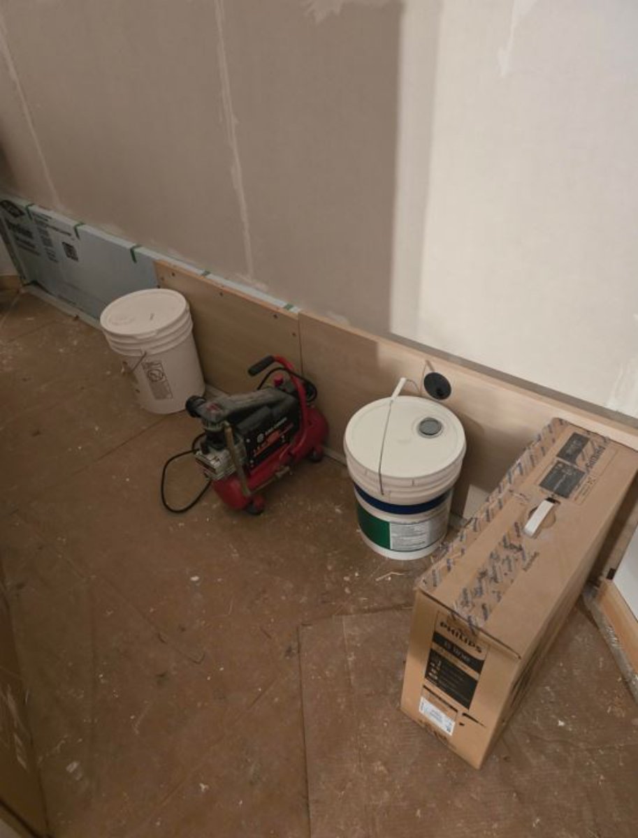 - Finished installing the drywall on the soffits and storage