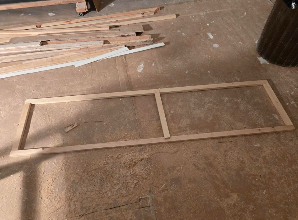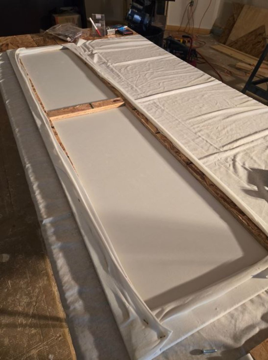 We made a first frame out of 1x3s to cover the soffits with fabric, but it was too thick.