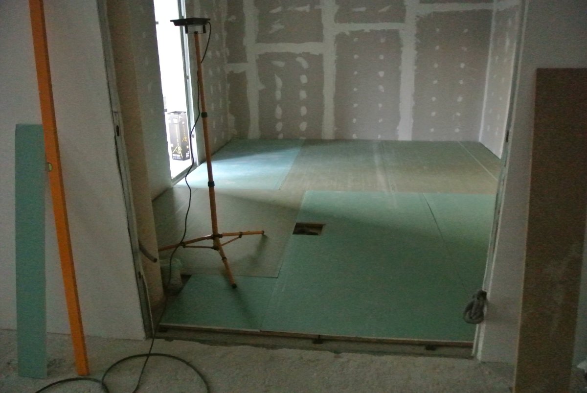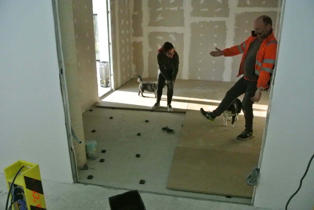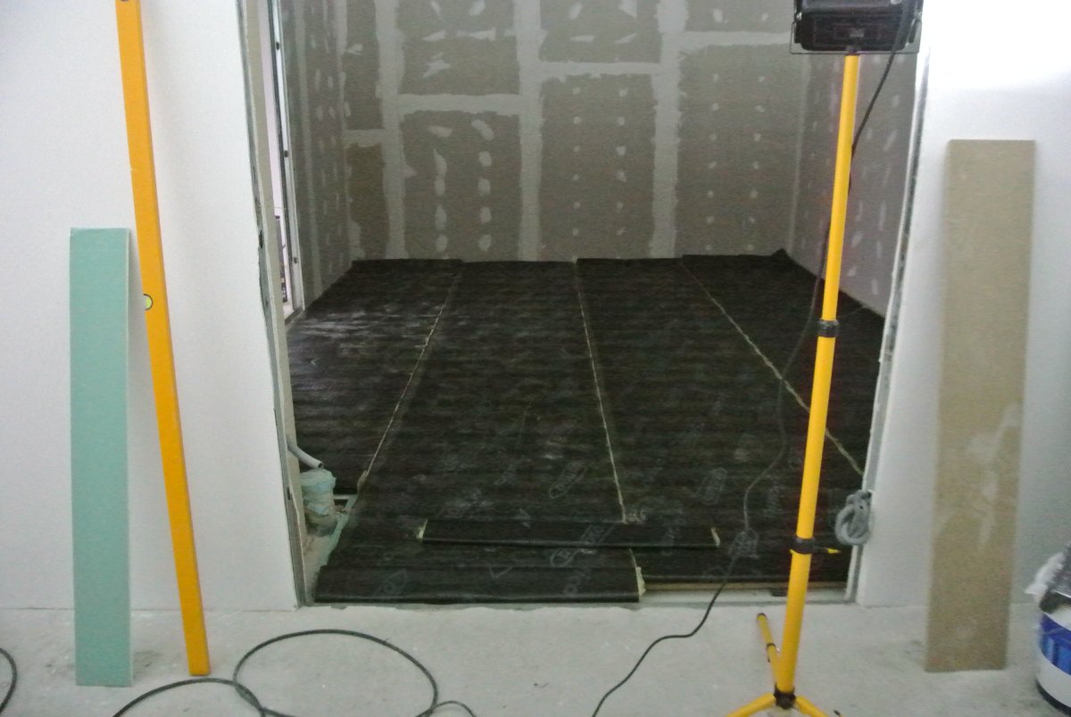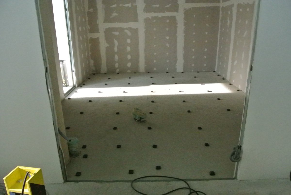 Joules has arrived and looks like he will be working here 3-4 days a week for the next couple of months. They managed to get the floating floor for the control room done today and will start to build the walls tomorrow.. Floor was made with 6 laters suspended on waffle pads.