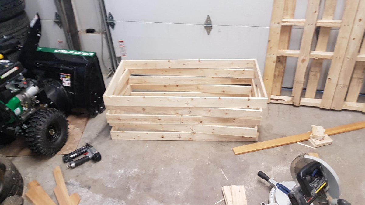 Just the usual stacked triangles in the corners. 24x24 with a ~33" diagonal across the corner. This is not the cheapest way, but it's the most effective from what I have found, and it's damn simple to build.