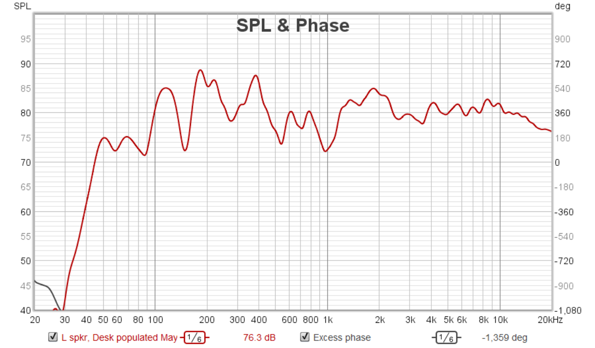 Thanks for the replies! So I am still assuming impulse reflections aren't perceivable in the ranges below 2ms - especially below 1ms, but I didn't think about comb filtering. Again, I don't know what I can do about the desk reflections. I may have to just let it be. Also, the weak bass response below 95Hz is still a mystery. Open to any ideas on that....