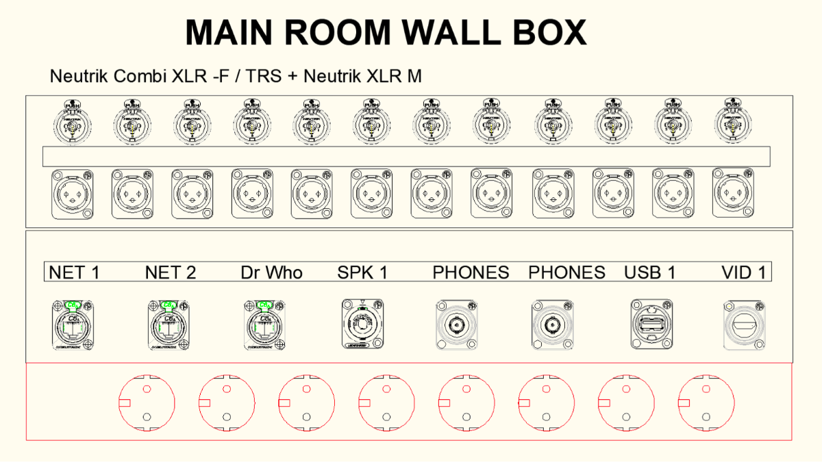 Zephyr is very happy with the new patio. We will finish it off tomorrow as well as the nice steps. There will be a nice rockery along the side of the building as well in a few days... Joules made a lot of progress today on the front wall, filling it with sand and other dense materials and made the speaker boxes, wrapped in dead sheet with ventilation holes, got the rest of the wires pulled under the live room floor to the control room... THis is what will go in the walls of the live room in 3 or 4 locations. See below... Dr Who is actually going to be another ethernet cable. This should allow us everything we will need as these XLR connections can go either way...